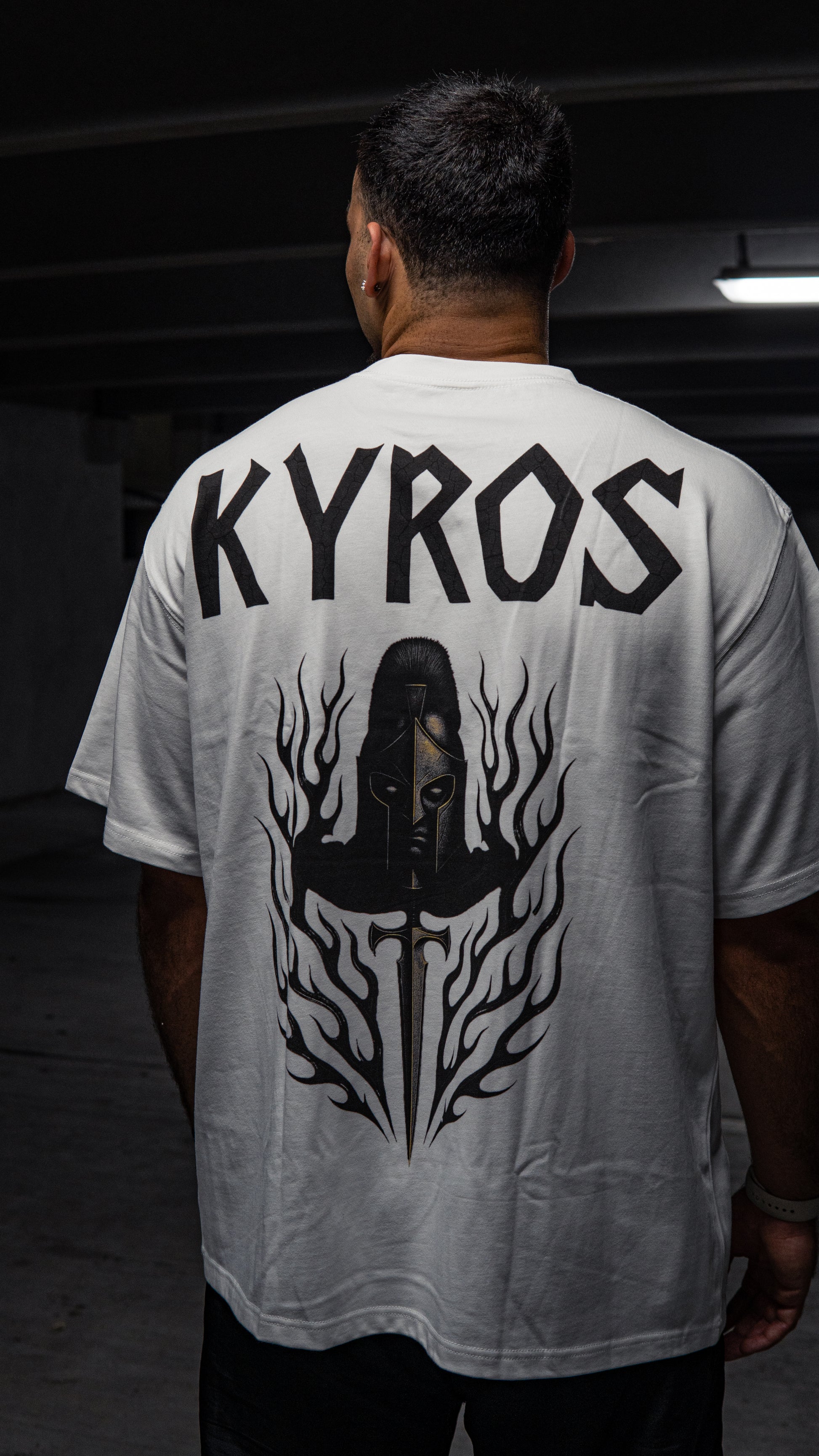 - Bold KYROS wordmark arched across the shoulders for a statement back hit.